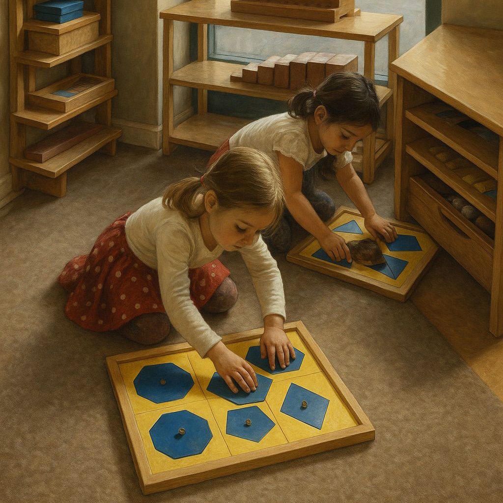 Die geometrischen Formen von Montessori sind Sinnesmaterialien, die Kindern helfen, unterschiedliche Flächen und Körper zu erkennen, zu benennen und ein grundlegendes Verständnis für Geometrie zu entwickeln.